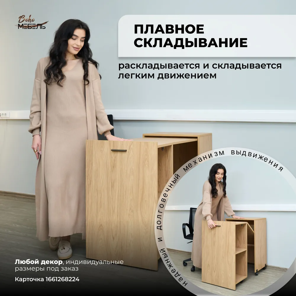 Особенности: Дополнительная полка для аксессуаров, С полками, С ящиками, Складывание в стопку, С тумбой, Конференц-столик